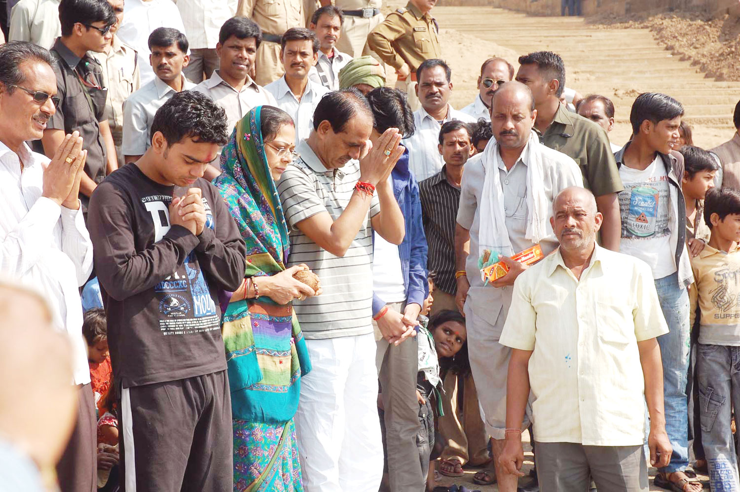 मुख्यमंत्री श्री शिवराज सिंह चौहान ने सपरिवार पैतृक ग्राम जैत में माँ नर्मदा की पूजा-अर्चना की