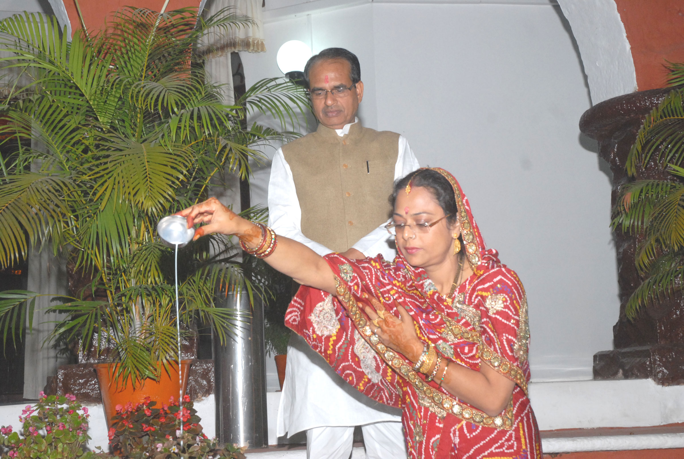 मुख्यमंत्री निवास पर आज करवा चौथ पर्व सादगी एवं परंपरागत उत्साह के साथ मनाया गया। श्रीमती साधना सिंह चौहान ने पारंपरिक विधि विधान से चाँद को अर्ध्य देकर अपने पति श्री शिवराज सिंह चौहान की दीर्घायु की कामना की। श्री चौहान ने श्रीमती साधना सिंह को जल ग्रहण कराया तथा मिष्ठान खिलाकर उनका व्रत सम्पन्न कराया।