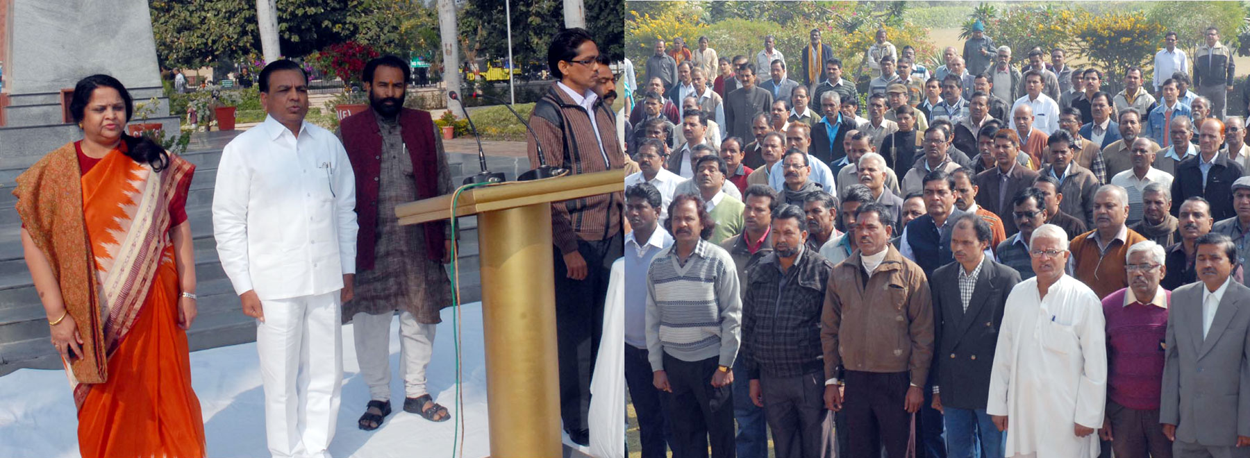 मंत्रालय परिसर में नर्व वर्ष के पहले दिन अधिकारियों तथा कर्मचारियों ने राष्ट्रगीत का सामूहिक गायन किया। इस अवसर पर परिवहन मंत्री श्री जगदीश देवड़ा और अपर मुख्य सचिव श्रीमती अरूणा शर्मा विशेष रूप से उपस्थित थीं